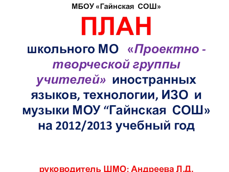 языков, технологии, ИЗО и музыки МОУ “Гайнская СОШ» на 2012/2013 учебный год
