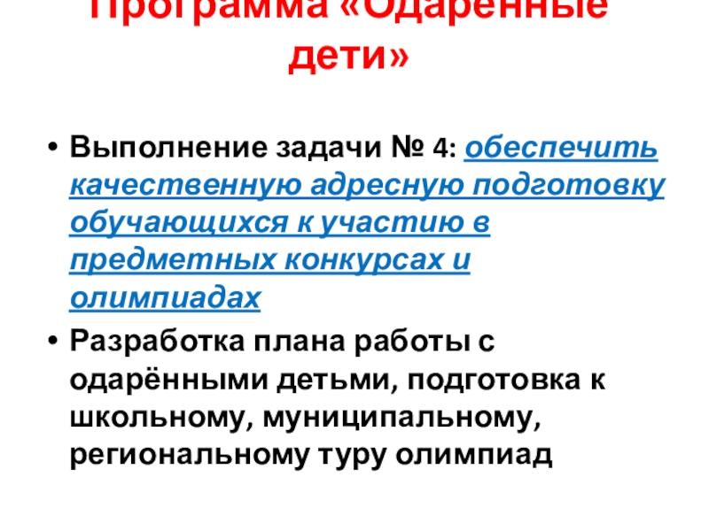 Разработка плана работы с одарёнными детьми, подготовка к школьному, муниципальному, региональному туру олимпиад