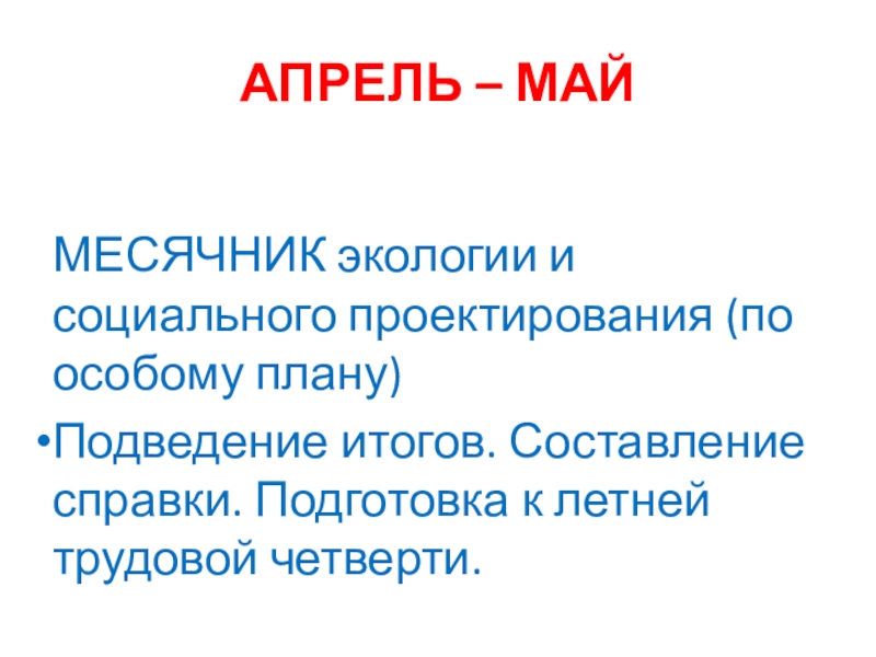 МЕСЯЧНИК экологии и социального проектирования (по особому плану)