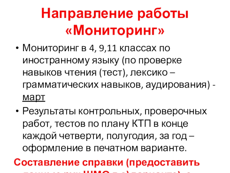 Мониторинг в 4, 9,11 классах по иностранному языку (по