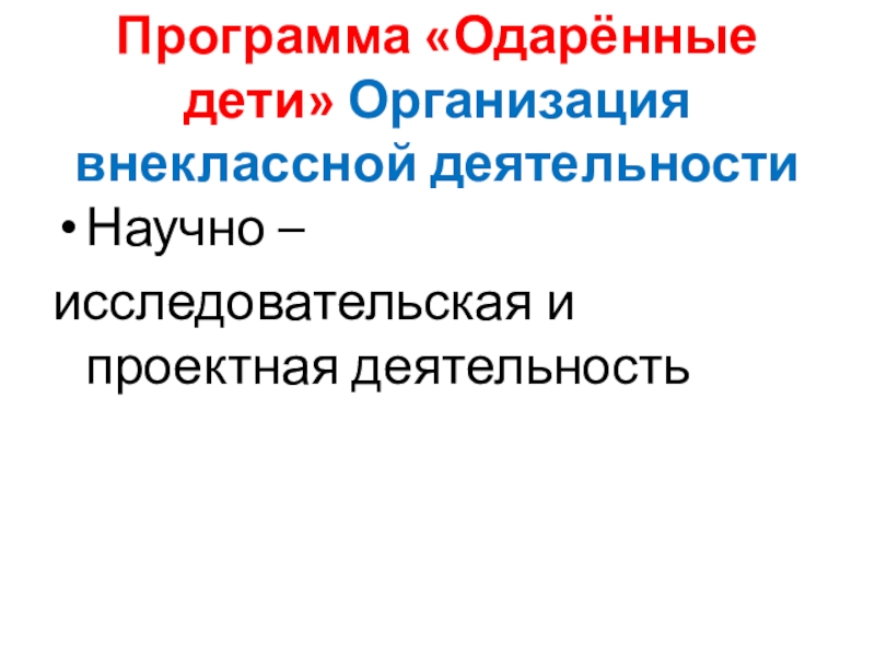 Программа «Одарённые дети» Организация внеклассной деятельности