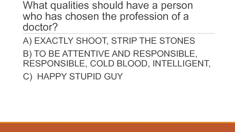 B) TO BE ATTENTIVE AND RESPONSIBLE, RESPONSIBLE, COLD BLOOD, INTELLIGENT,