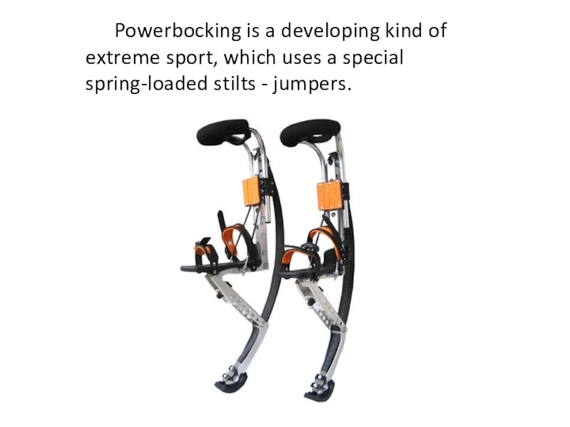 Слайд 2 Powerbocking is a developing kind of extreme sport, which uses a