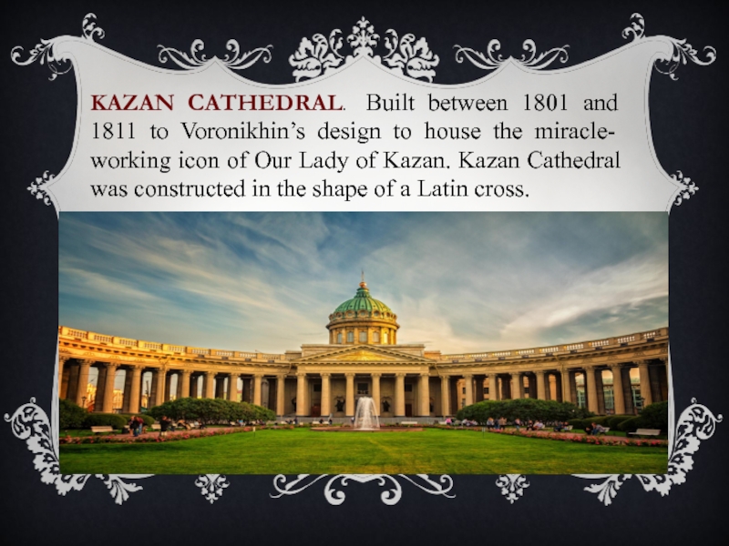Слайд 12KAZAN CATHEDRAL. Built between 1801 and 1811 to Voronikhin’s design to