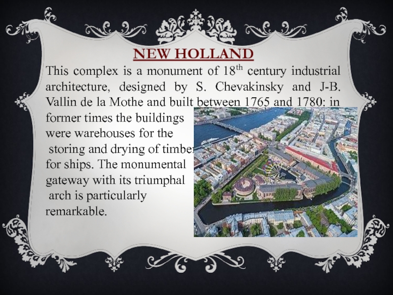 designed by S. Chevakinsky and J-B. Vallin de la Mothe and built between 1765 and 1780: in former times the buildings