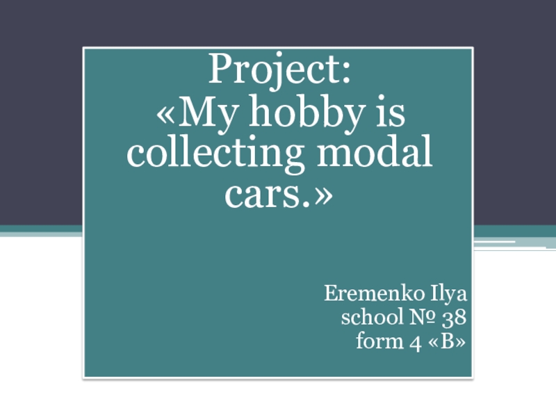 Project:«My hobby is collecting modal cars.»Eremenko Ilyaschool № 38form 4 «B»
