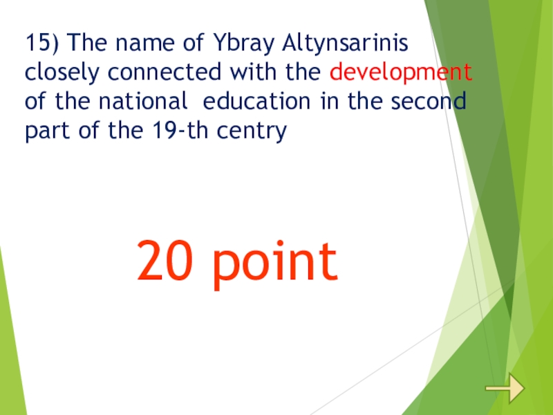 15) The name of Ybray Altynsarinis closely connected with the development of the national education in the