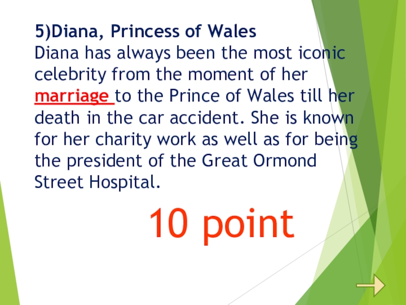 Слайд 545)Diana, Princess of Wales Diana has always been the most iconic celebrity