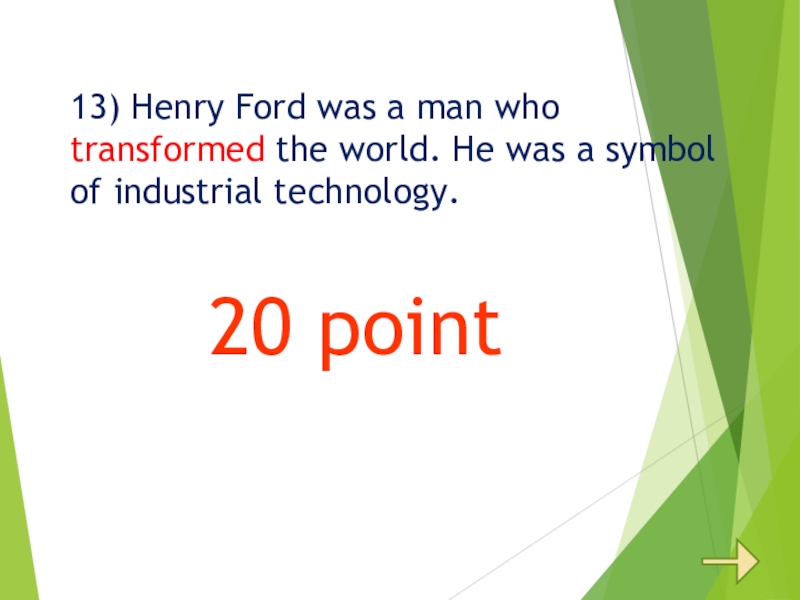 Слайд 6213) Henry Ford was a man who transformed the world. He