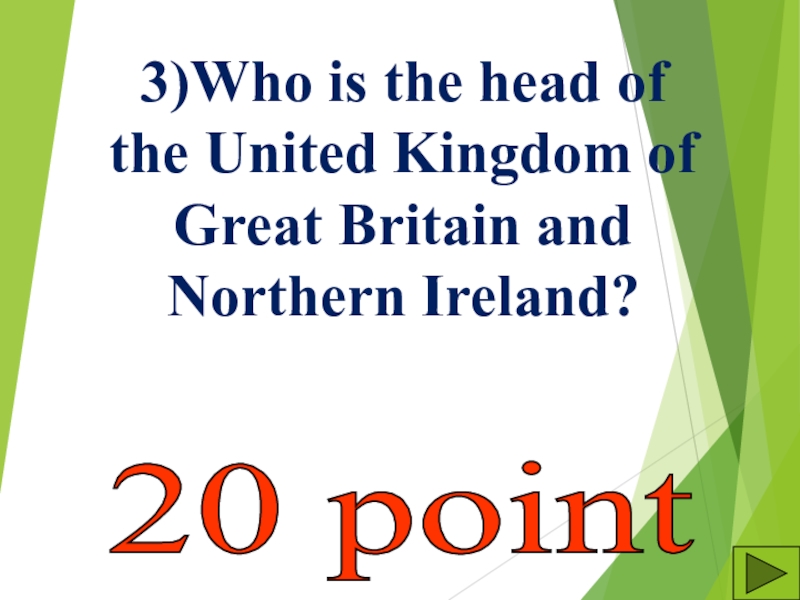 20 point 3)Who is the head of the United Kingdom of Great Britain and Northern Ireland?