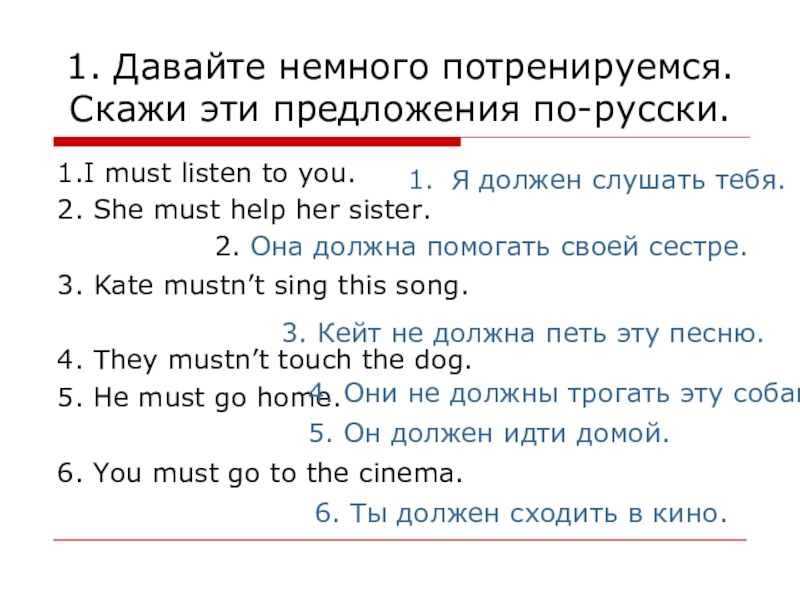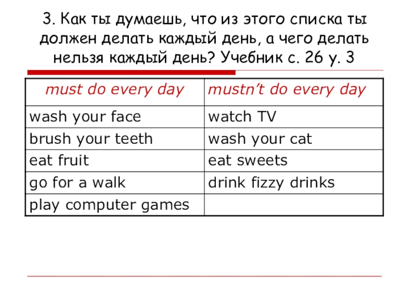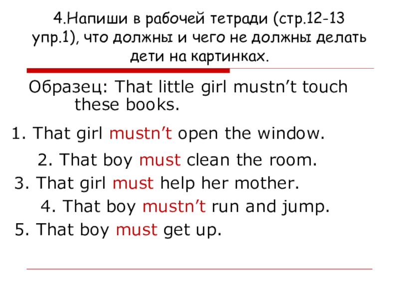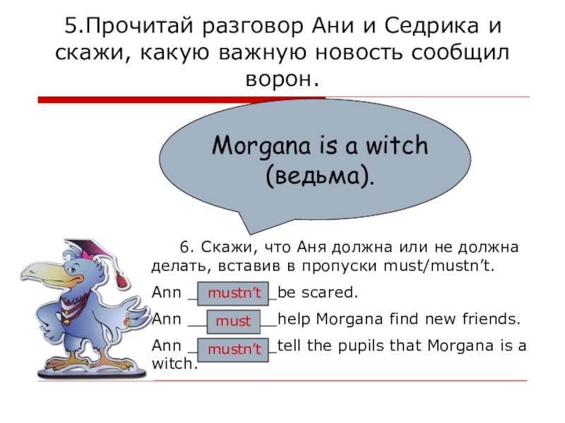 6. Скажи, что Аня должна или не должна делать, вставив в пропуски must/mustn’t.