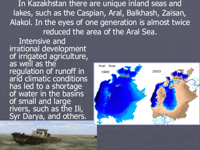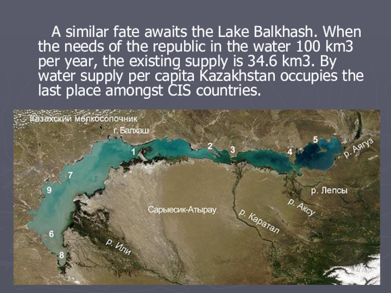 Intensive and irrational development of irrigated agriculture, as well as the regulation of runoff in arid climatic conditions has led to a shortage of water in the basins of small and large rivers, such as the Ili, Syr Darya, and others.