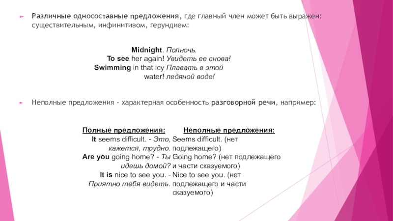 Слайд 5Различные односоставные предложения, где главный член может быть выражен: существительным, инфинитивом,