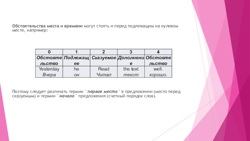 Слайд 9Обстоятельства места и времени могут стоять и перед подлежащим на нулевом