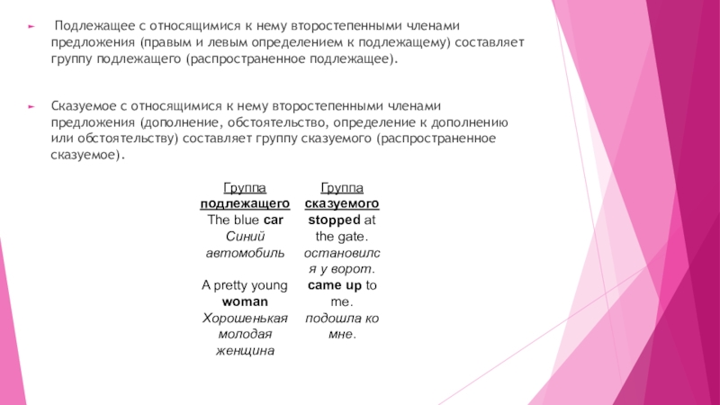 Слайд 3 Подлежащее с относящимися к нему второстепенными членами предложения (правым и