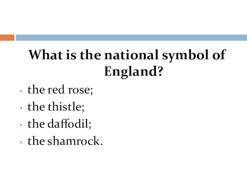 What is the national symbol of England? the red rose;the thistle;the daffodil;the shamrock.