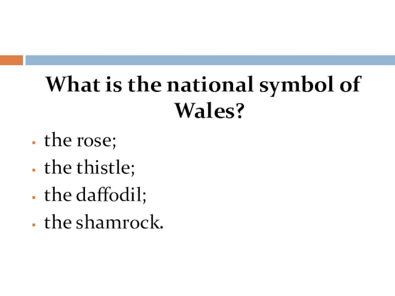 What is the national symbol of Wales?the rose;the thistle;the daffodil;the shamrock.