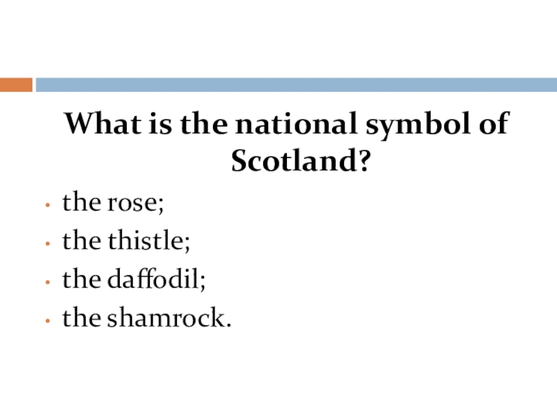 What is the national symbol of Scotland? the rose;the thistle;the daffodil;the shamrock.