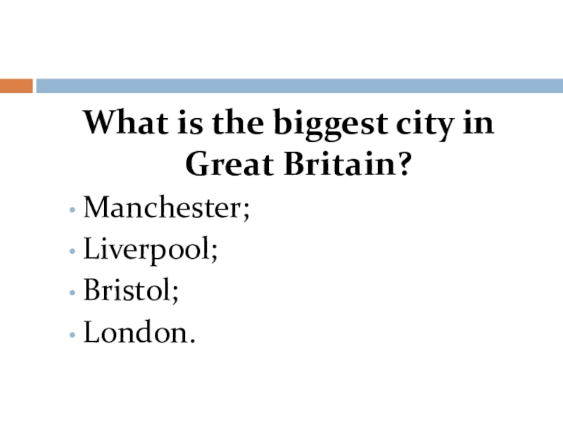 What is the biggest city in Great Britain? Manchester;Liverpool;Bristol;London.