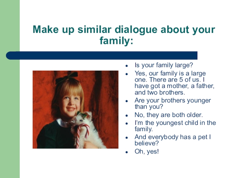 Yes, our family is a large one. There are 5 of us. I have got a mother, a father, and two brothers.
