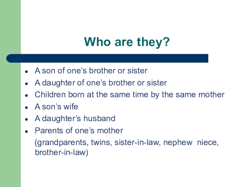 (grandparents, twins, sister-in-law, nephew niece, brother-in-law)