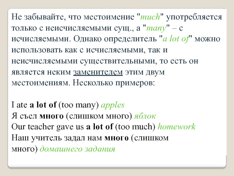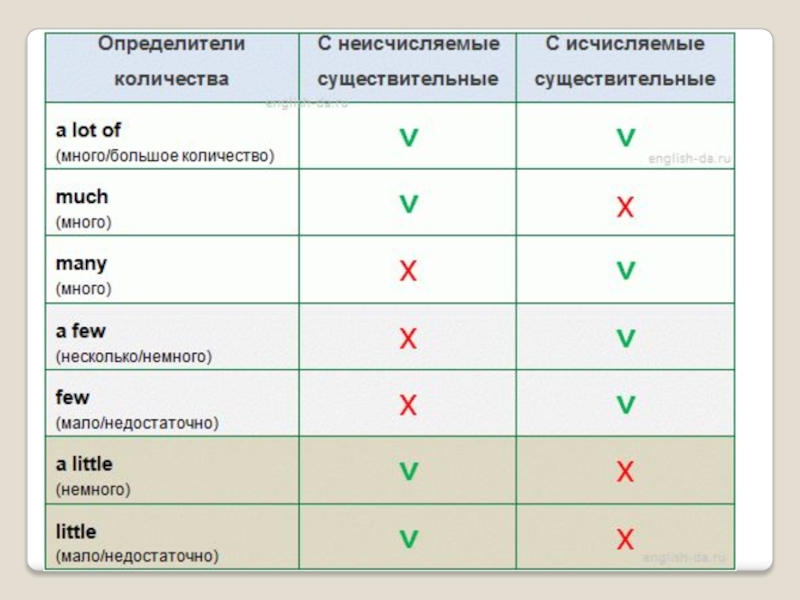 количества. Они употребляются как с исчисляемыми, так и с неисчисляемыми существительными.
