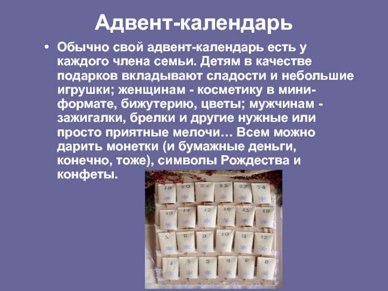 Обычно свой адвент-календарь есть у каждого члена семьи. Детям в качестве