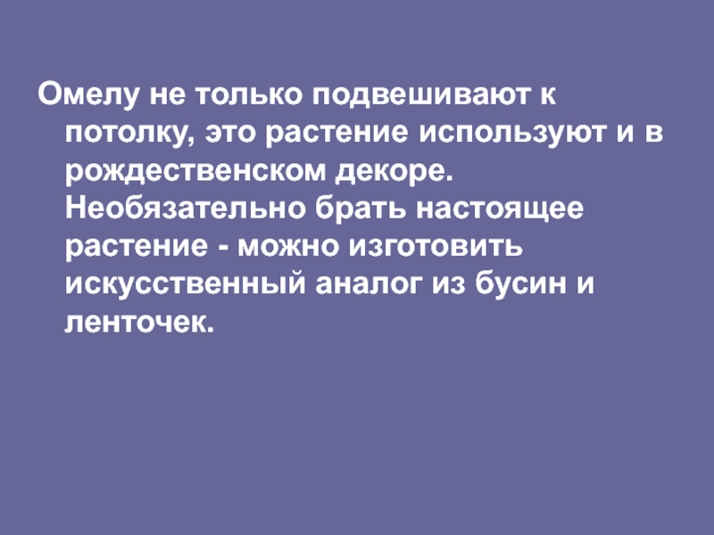 Слайд 17Омелу не только подвешивают к потолку, это растение используют и в