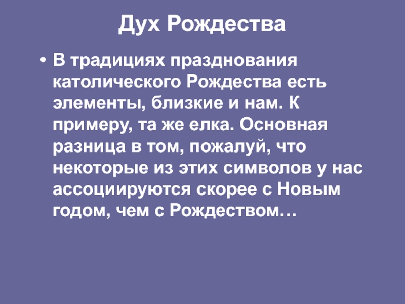 В традициях празднования католического Рождества есть элементы, близкие и нам.