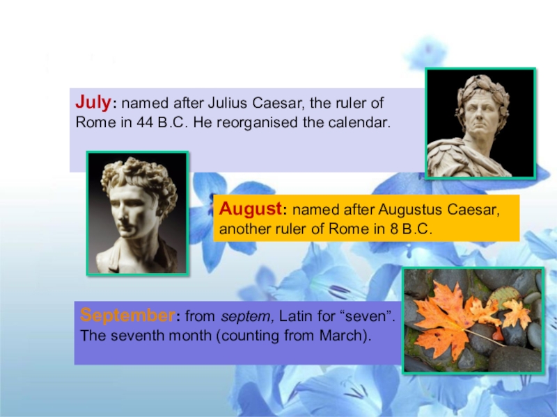 August: named after Augustus Caesar, another ruler of Rome in 8 B.C.