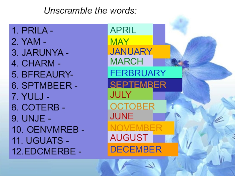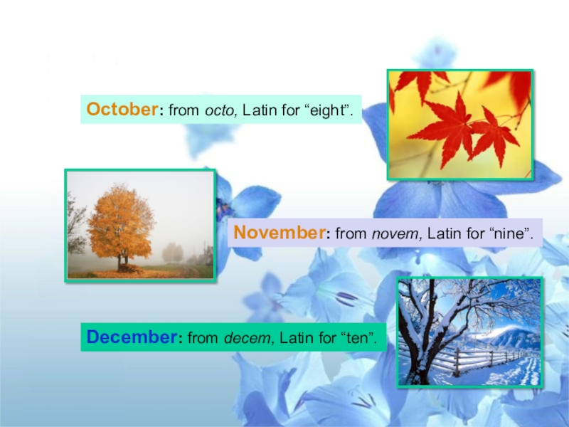 September: from septem, Latin for “seven”. The seventh month (counting from March).