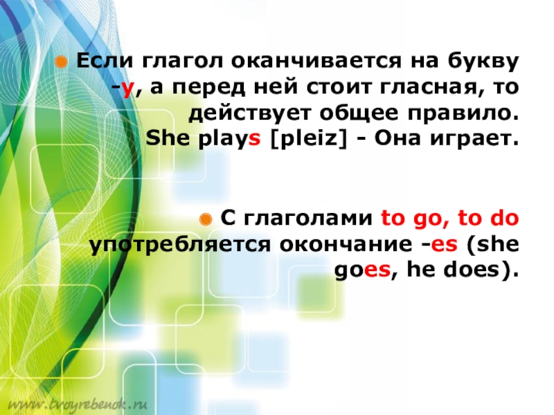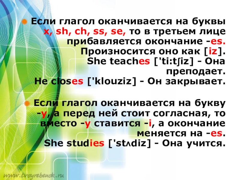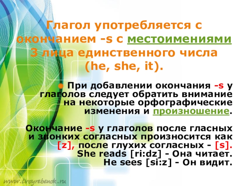 При добавлении окончания -s у глаголов следует обратить внимание на некоторые орфографические изменения и произношение.