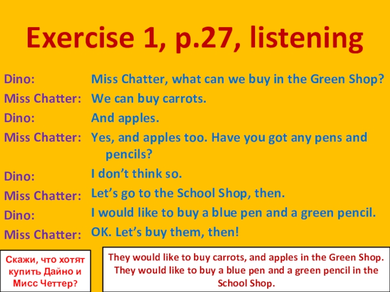 Скажи, что хотят купить Дайно и Мисс Четтер?