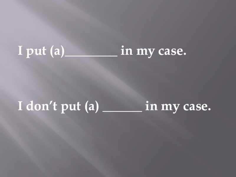 I put (a)________ in my case.I don’t put (a) ______ in my case.