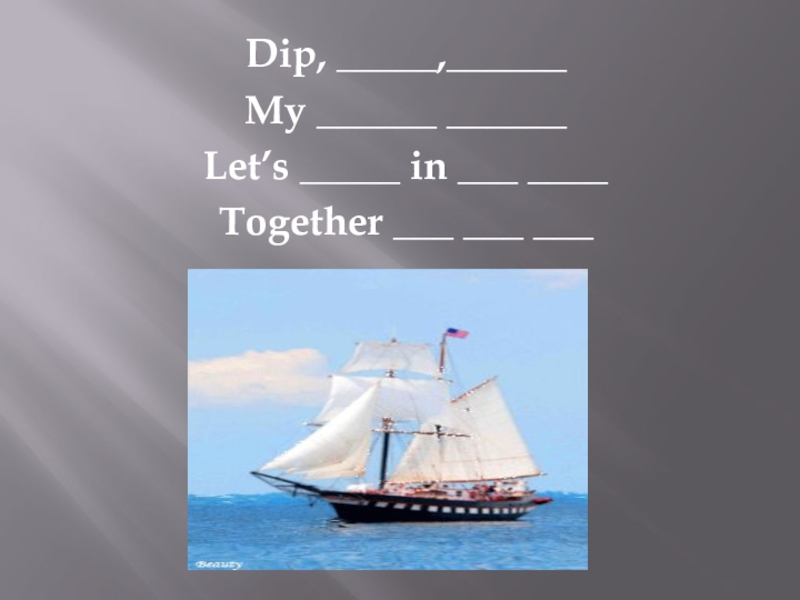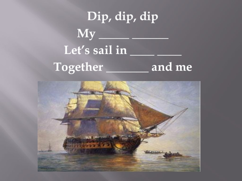 Dip, dip, dipMy _____ ______Let’s sail in ____ ____Together _______ and me