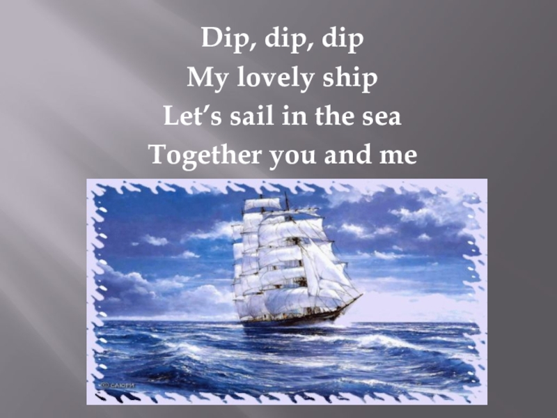 Dip, dip, dipMy lovely shipLet’s sail in the seaTogether you and me