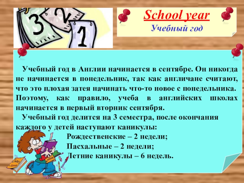 Поэтому, как правило, учеба в английских школах начинается в первый вторник сентября.