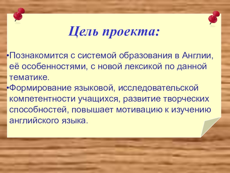 Формирование языковой, исследовательской компетентности учащихся, развитие творческих способностей, повышает мотивацию к изучению английского языка.