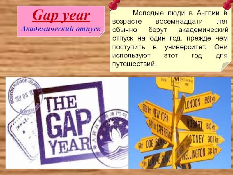 восемнадцати лет обычно берут академический отпуск на один год, прежде чем поступить в университет. Они используют этот год для путешествий.