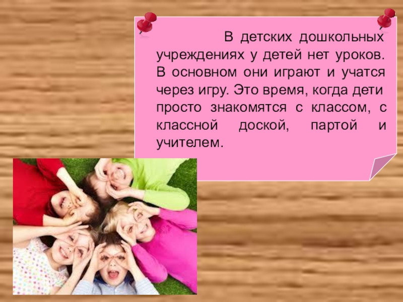 нет уроков. В основном они играют и учатся через игру. Это время, когда дети просто знакомятся с классом, с классной доской, партой и учителем.