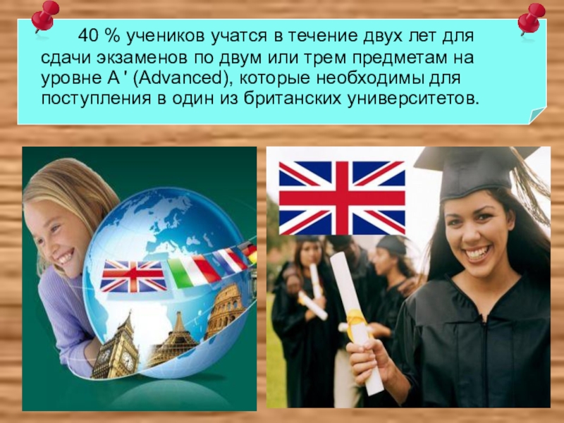для сдачи экзаменов по двум или трем предметам на уровне A ' (Advanced), которые необходимы для поступления в один из британских университетов.