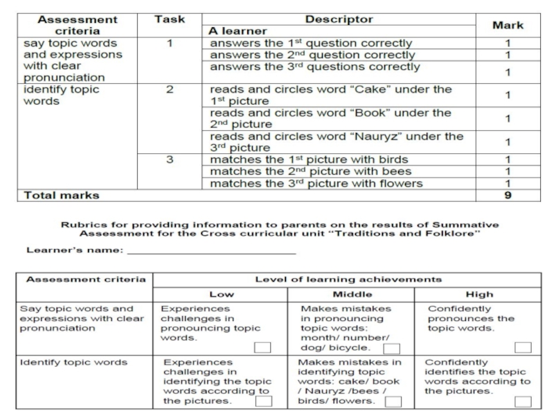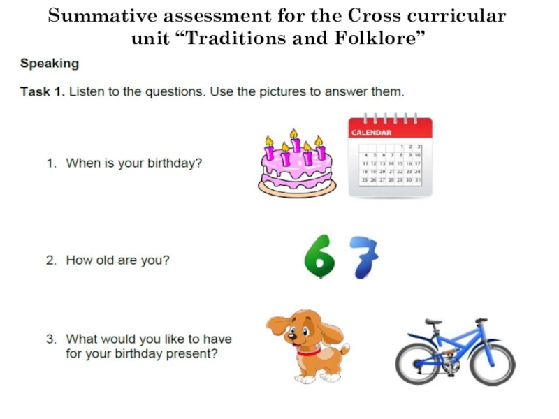 Слайд 82Summative assessment for the Cross curricular unit “Traditions and Folklore”