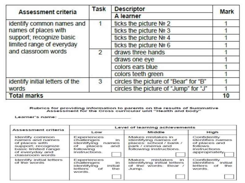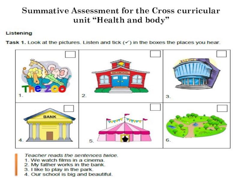 Слайд 39Summative Assessment for the Cross curricular unit “Health and body”