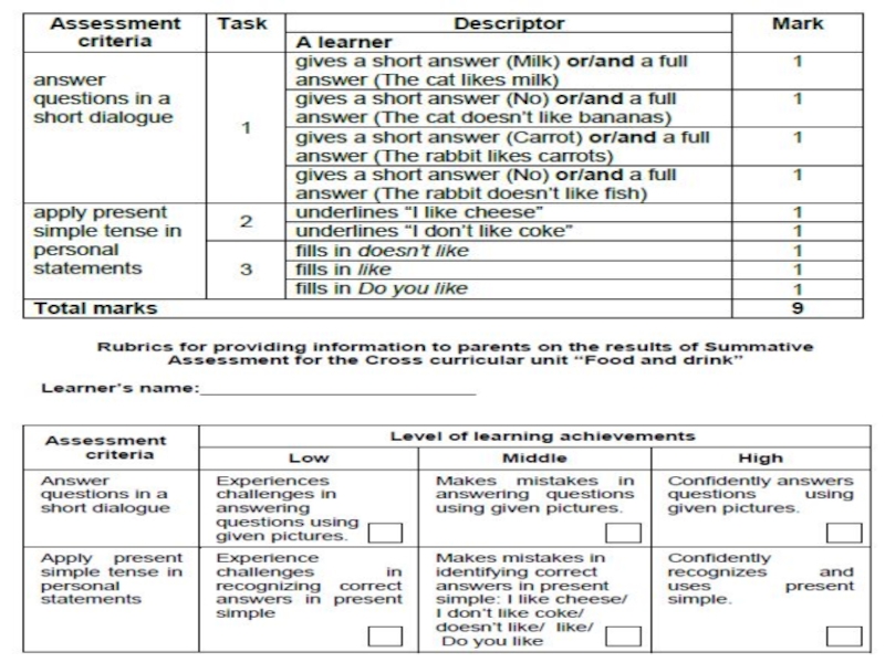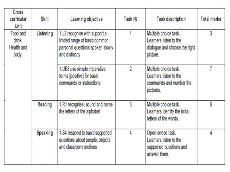 Слайд 13Summative Assessment for the Cross curricular unit “Food and drink”