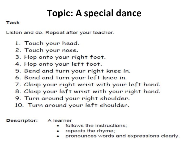 Слайд 26Topic: A special dance