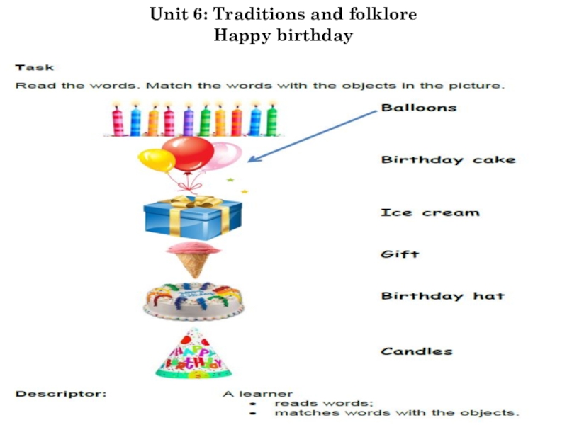 Слайд 20Unit 6: Traditions and folklore Happy birthday