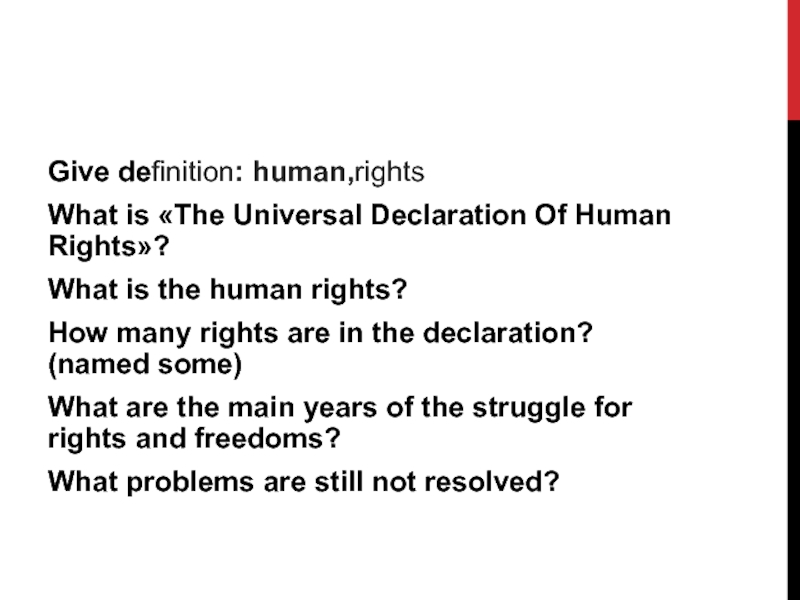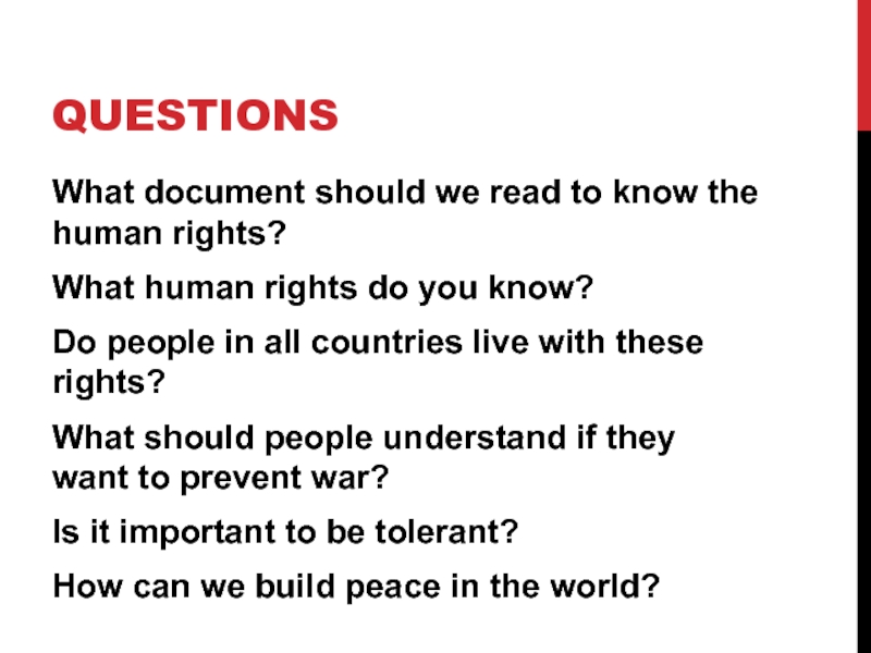 QuestionsWhat document should we read to know the human rights?What human rights do you know?Do people in