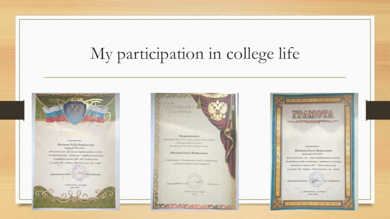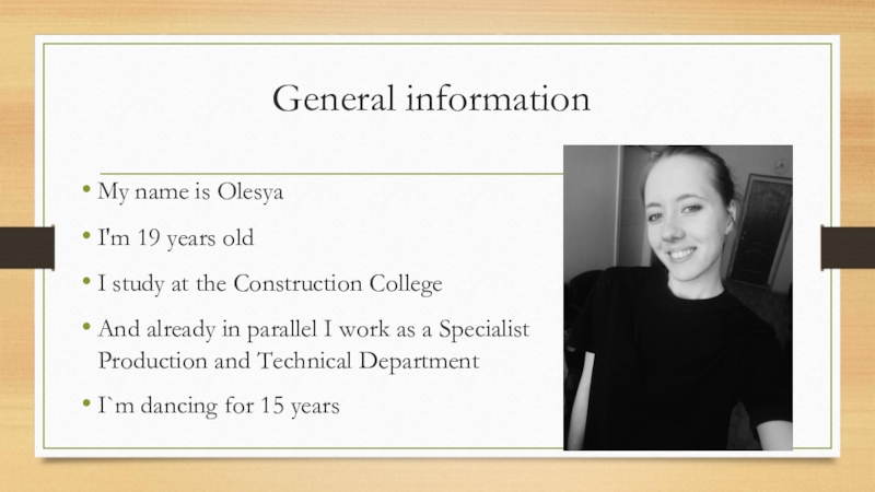 General informationMy name is OlesyaI'm 19 years old I study at the Construction College And already in