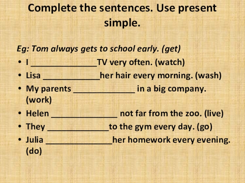 Complete the sentences. Use present simple. Eg: Tom always gets to school early. (get)I ______________TV very often.