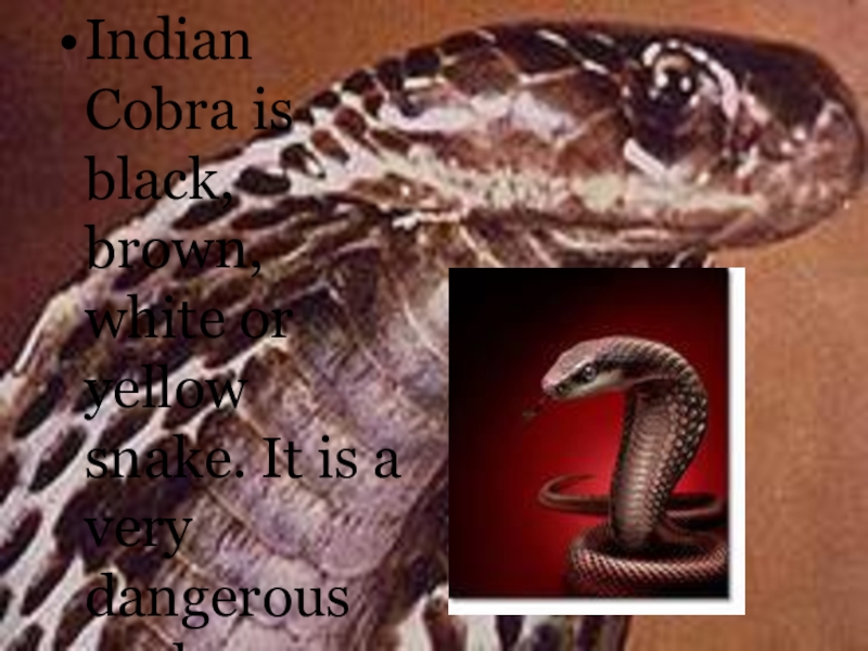 Indian Cobra is black, brown, white or yellow snake. It is a very dangerous snake